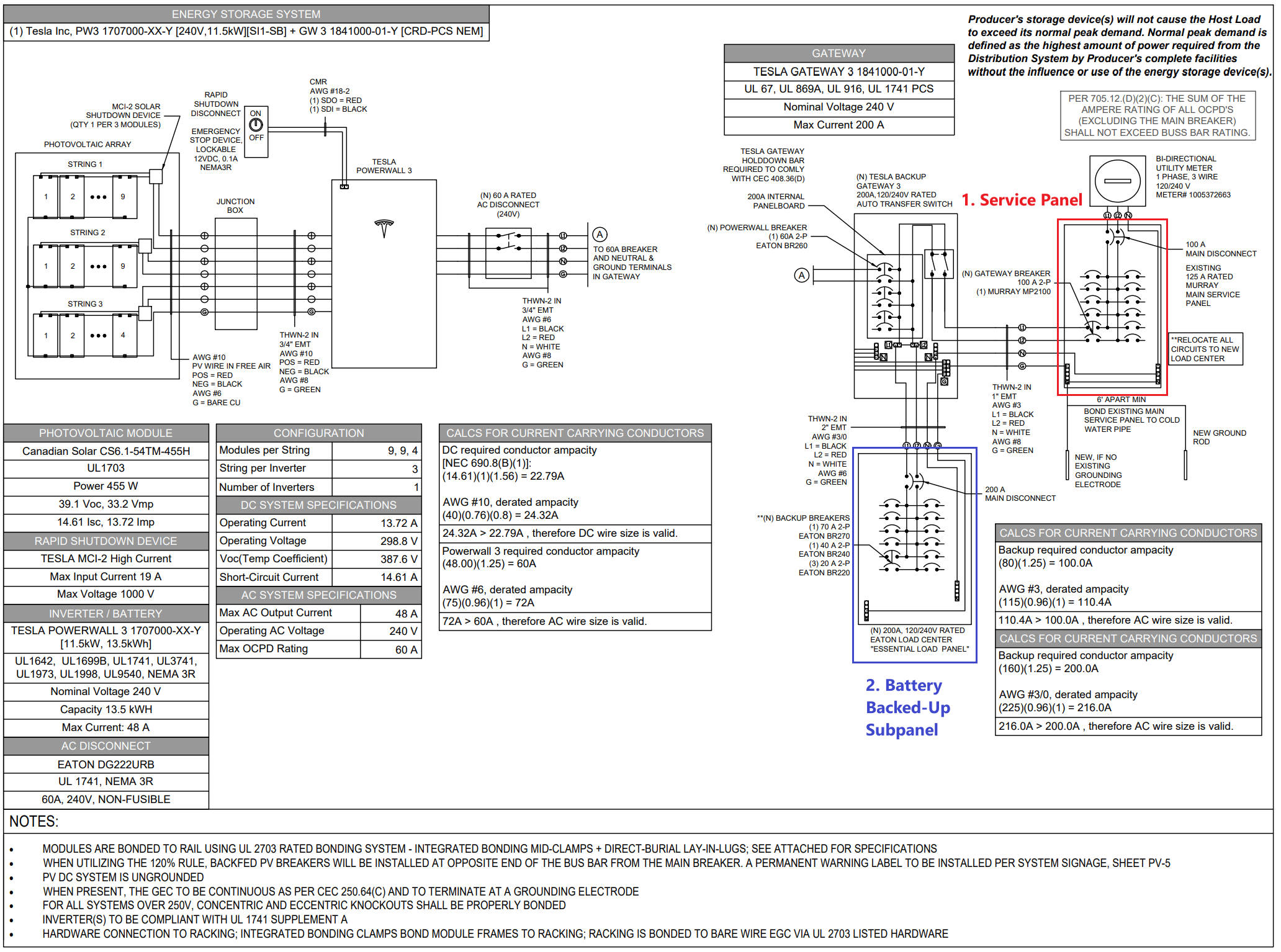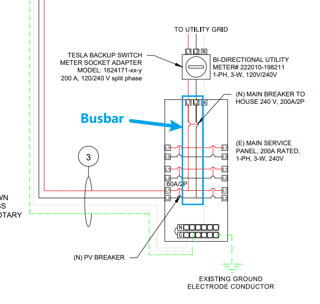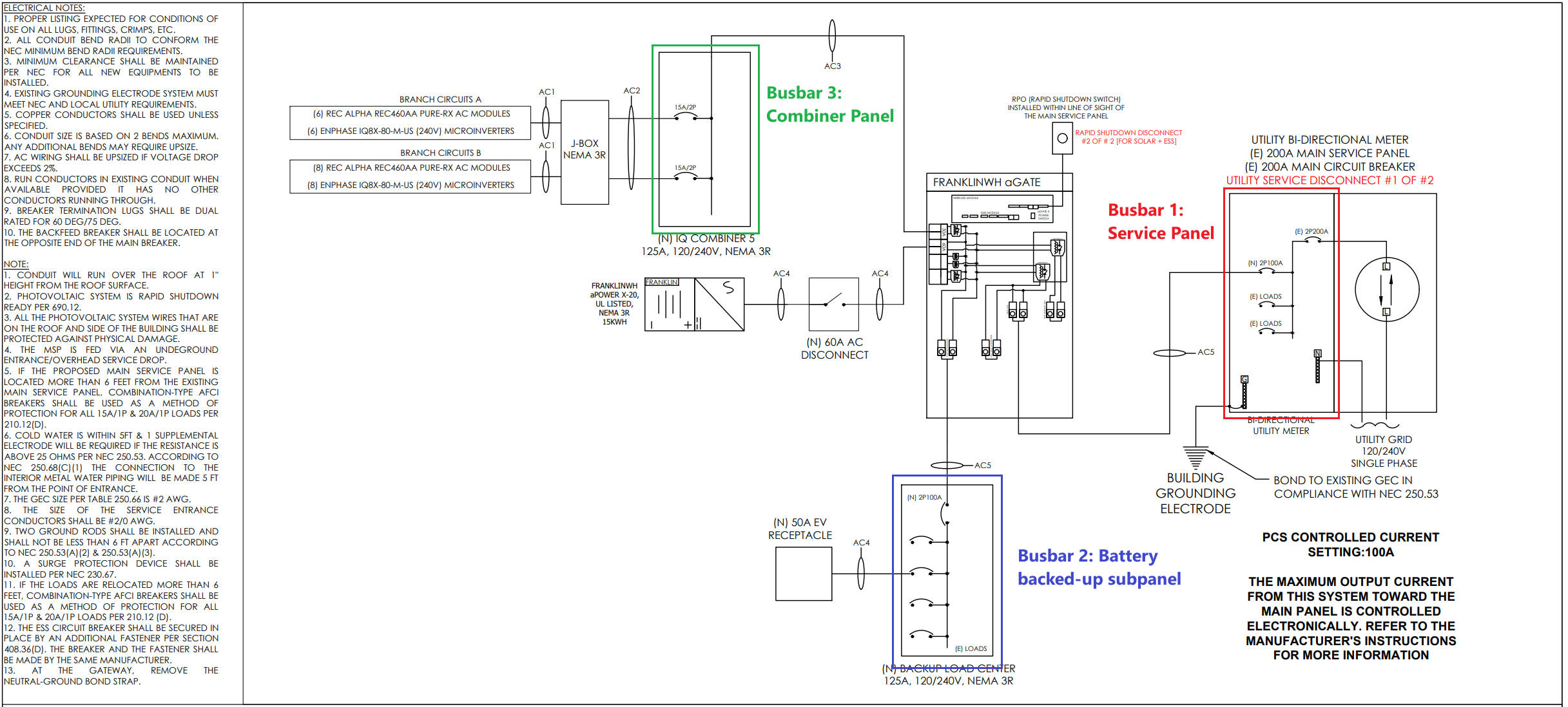 Example: 3 Busbars - Service Panel, Battery backed-up subpanel, and a combiner panel.