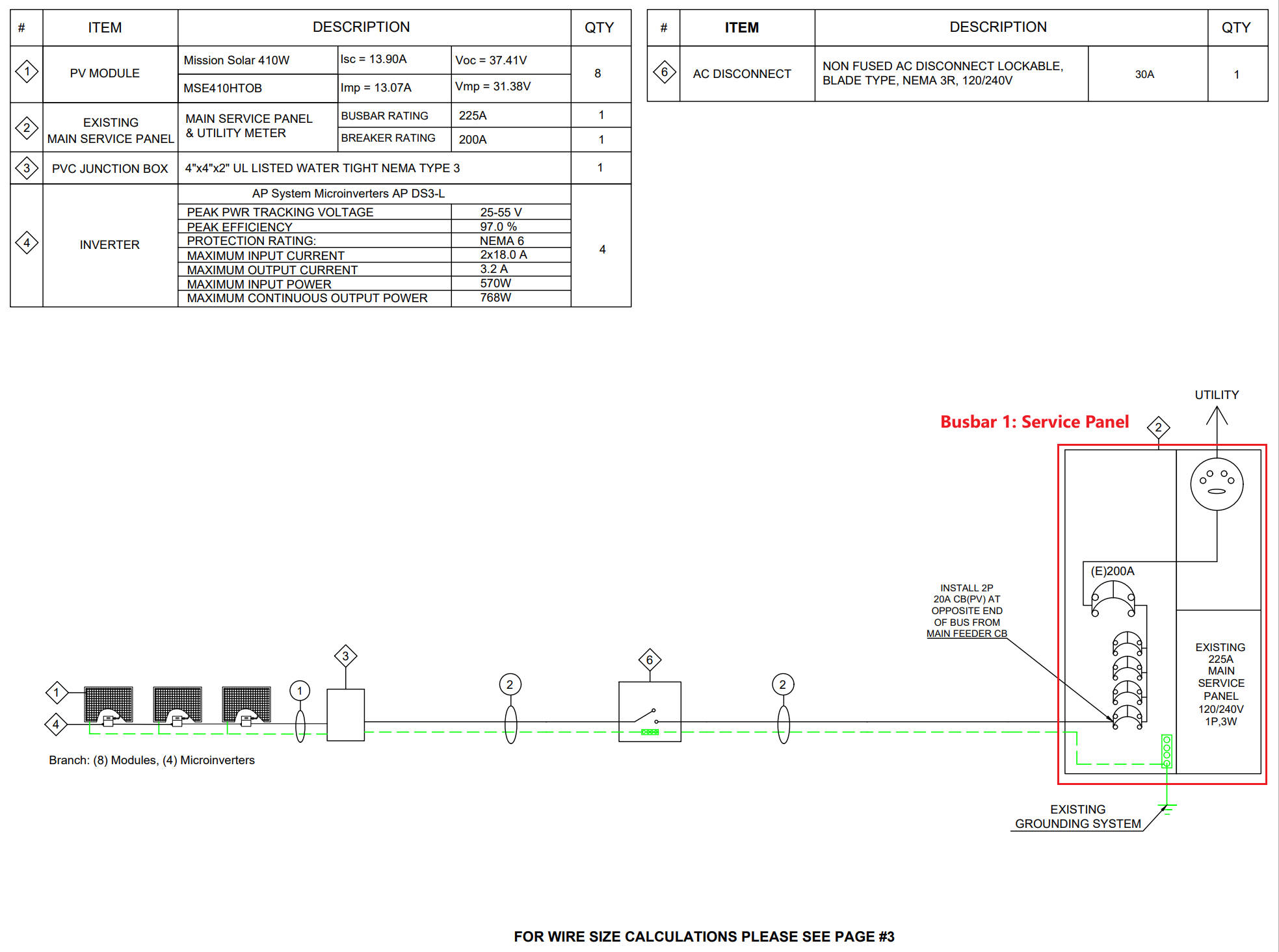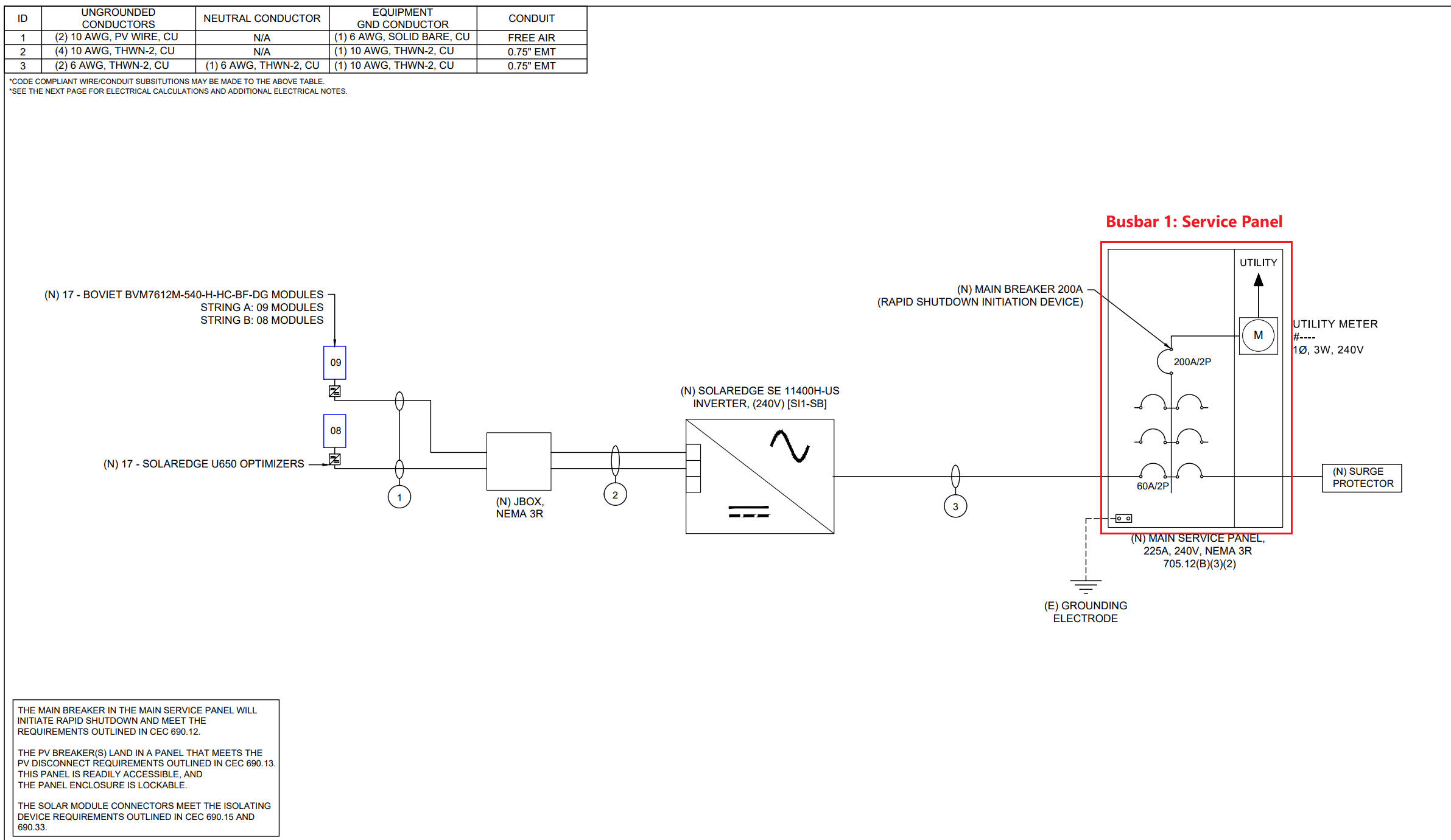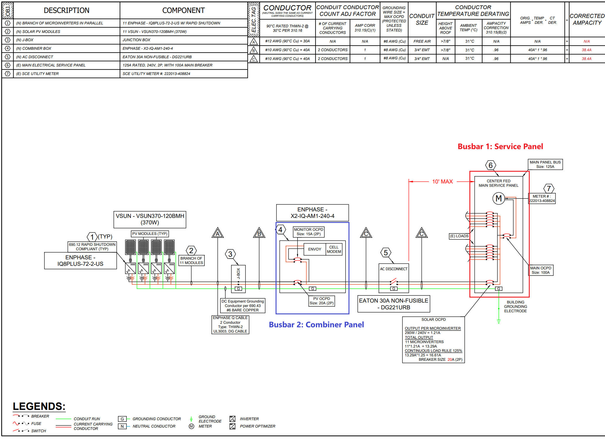 Example: 2 Busbars - Service Panel and a combiner panel.