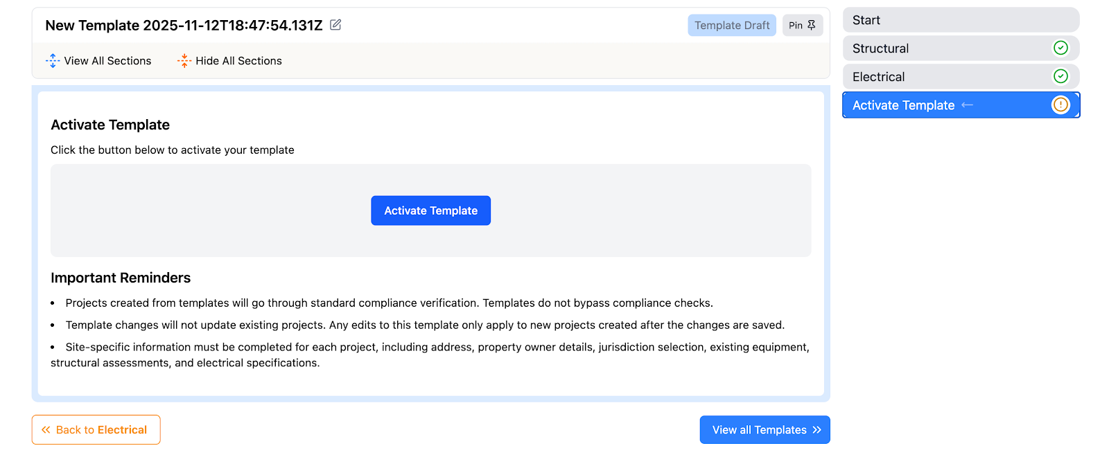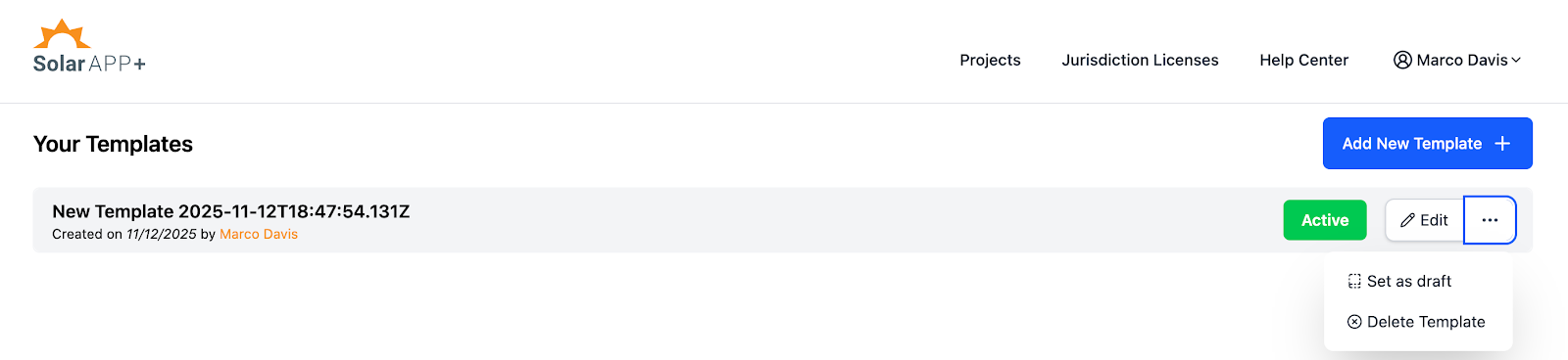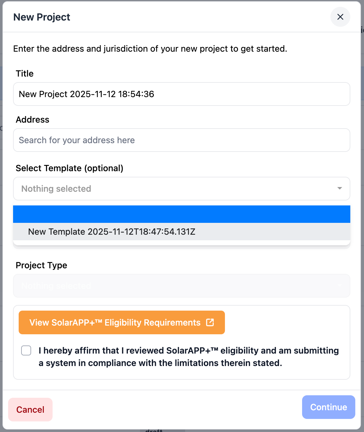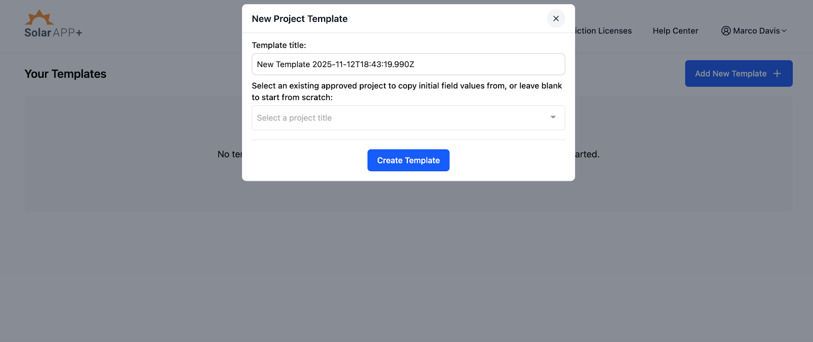 - SolarAPP+ will automatically fill in all saved responses from the template.