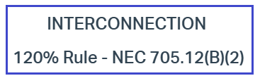 R749: 120% rule Your main breaker rating plus 125% of your power production source(s) continuous output current rating is larger than 120% of your busbar rating. Either choose a larger busbar rating, or make the sum of your main breaker and your power production source(s) smaller.