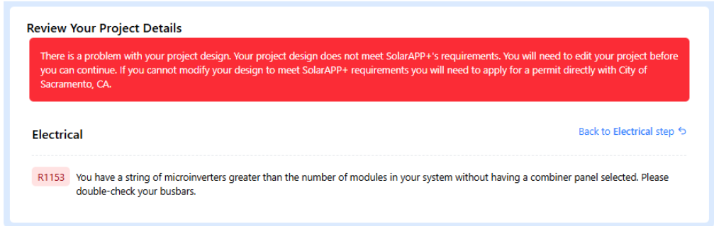 - Continue to fill out the remaining inputs for the combiner panel for the desired project and the error will be cleared.