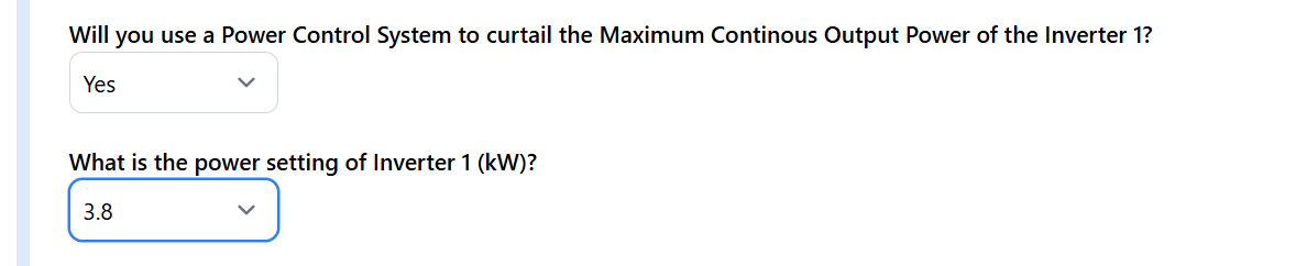 Will you use a Power Control System to curtail the Maximum Continuous Output Power of the Inverter?