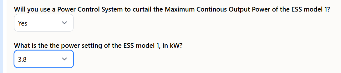 Select Yes, then enter the power setting in kW. The same prompt appears for the ESS if one is included.