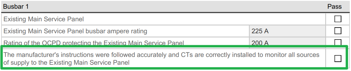 The first confirms that the manufacturer’s installation instructions were followed and that CTs are correctly installed to monitor all sources of supply to the main service panel.