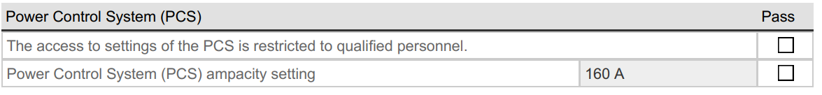 When single-source PCS is applied, an inspection checklist item will display confirming the inverter’s curtailed power setting.
